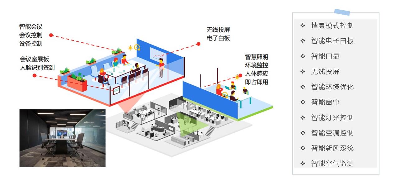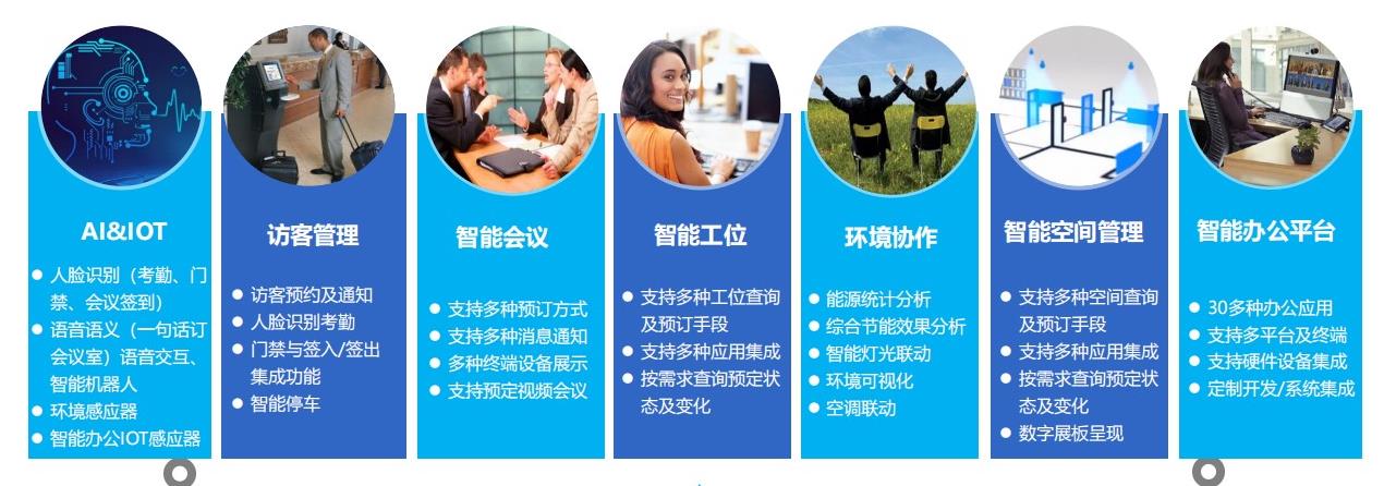 鲲鹭智慧办公是一款利用IoT、云计算、多媒体、BA等技术,对办公业务所需的软件、硬件、空间、资源、行为进行整合的信息化、智能化的管理系统。通过对门禁、考勤、灯光、窗帘、空调、网络、用电等管理,解决舒适度和环境管理成本问题;协同OA系统、ERP、MES系统、进销存系统,实现办公业务场景智能化。智慧办公系统可提供应用软件统一部署和交付,有效降低企业的管理和运营成本。