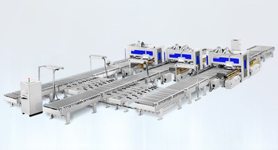 因此建设自动化分拣线主要应尽量提高分拣效率,避免造成物流堵塞,在板件达到分拣机械手前,系统应识别该板材所处的订单,并使同一订单板件自动分拣到指定区域,当同一订单板件齐全后再统一输送至包装工位。