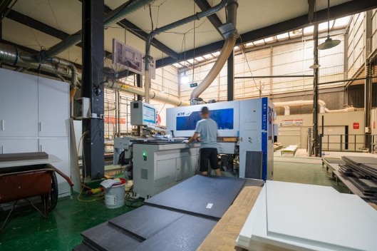 生产线上游与智能立库对接,通过系统分配生产材料替代人工搬运,应用自动输送线和机械手实现开料设备前后的上料