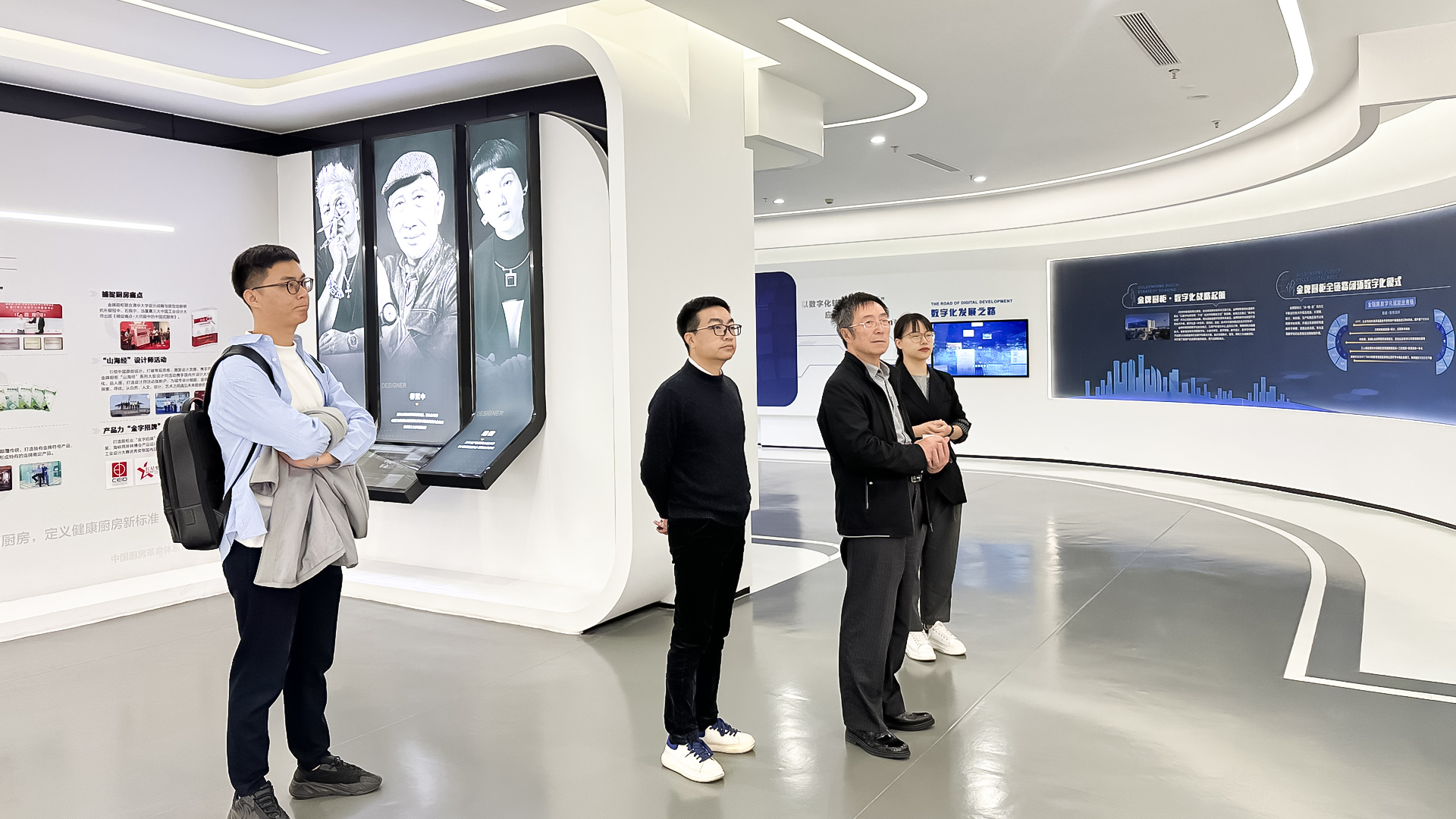 到访期间,任总陪同各位专家参观了金牌厨柜智能化产线、金牌厨柜信息化展厅、智小金展厅、鲲鹭物联展厅等。