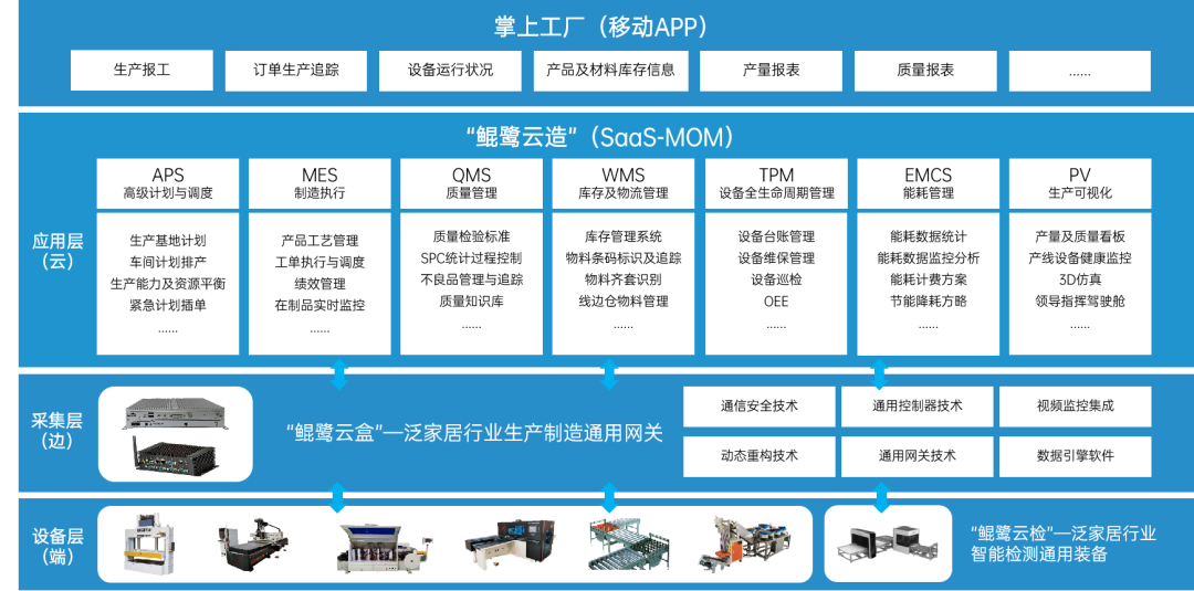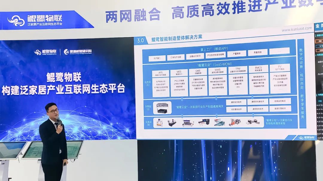 作为数字中国建设的积极参与者,鲲鹭物联在本次展会中展示了基于数字化诊断、规划咨询、数字孪生的全流程专业服务,能够全面了解企业数字化转型核心需求,提供专业分析及验证,充分提高数字化转型方案可靠性,帮助企业降低数字化过程中的风险。展示了可覆盖泛家居行业90%以上的生产设备数据通讯协议和边缘计算,可实现OEE与机联网的鲲鹭云盒,帮助企业构建生产数字化基础;展示了填补泛家居行业外观检测设备空白的云检系统,可实现2、4、6面检测,精度可达到0.2mm,并搭载鲲鹭核心优势算法,以帮助企业提升检测效率与产品质量,提升客户满意度;展示了可覆盖生产管理全过程的数字化服务、打通生产管理流程、并以其模块化、可自由拆解,支持SaaS化服务、私有化部署等特点的鲲鹭云造平台,以支持企业低成本实现数字化转型;同时展示了为泛家居产业数据化提供入口服务的鲲鹭掌上工厂门户平台,可以汇聚企业各类信息系统,打破数据孤岛,实现数据融合,为生产及经营管理提供一个功能全面、使用便捷、高效协同的服务应用。