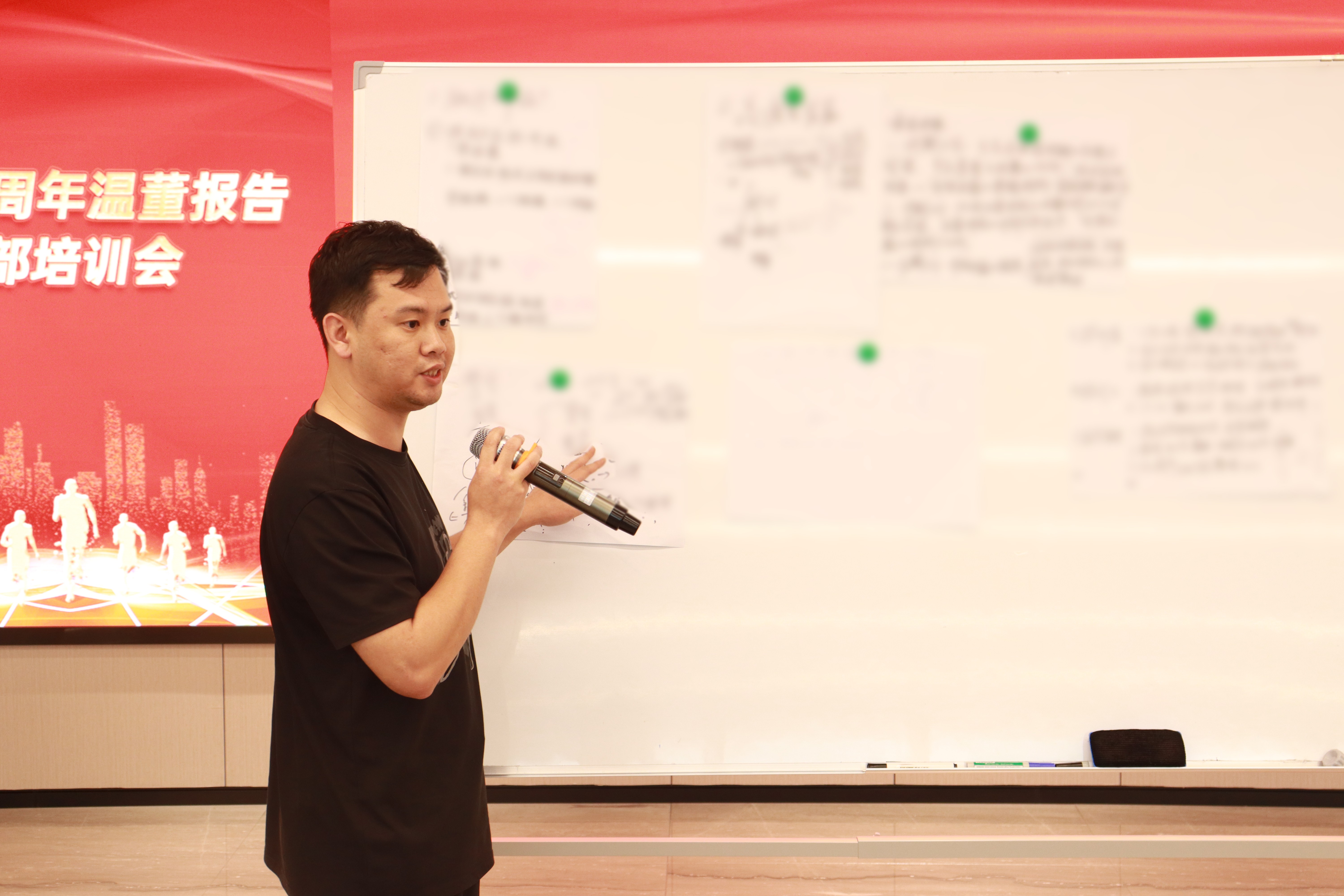 会议伊始,鲲鹭物联董事长任昱衡作开场发言。任总表示,此次培训目的是使每位员工对集团四大板块的未来方向有更清晰的认知。同时,在实现集团目标过程中,每位员工需明确自身定位及发展路径,从而规划未来工作定位,提升自身能力。