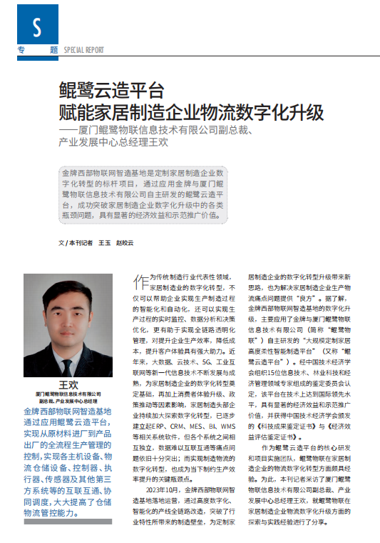 鲲鹭物联副总裁、 产业发展中心总经理王欢接受《物流技术与应用》专访:鲲鹭云造平台 赋能家居制造企业物流数字化升级