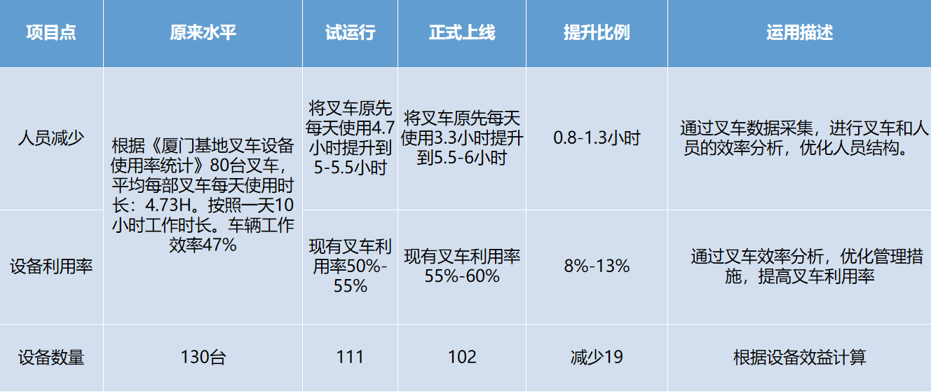 叉车效率提高到60%:614.9/6=102,预计叉车可减少:28辆 节省:162万元