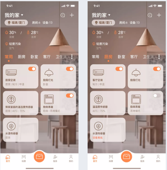 2、场景解决方案:多场景联动,居家环境中对多生态,跨品牌跨品类互联互通实现联动控制。